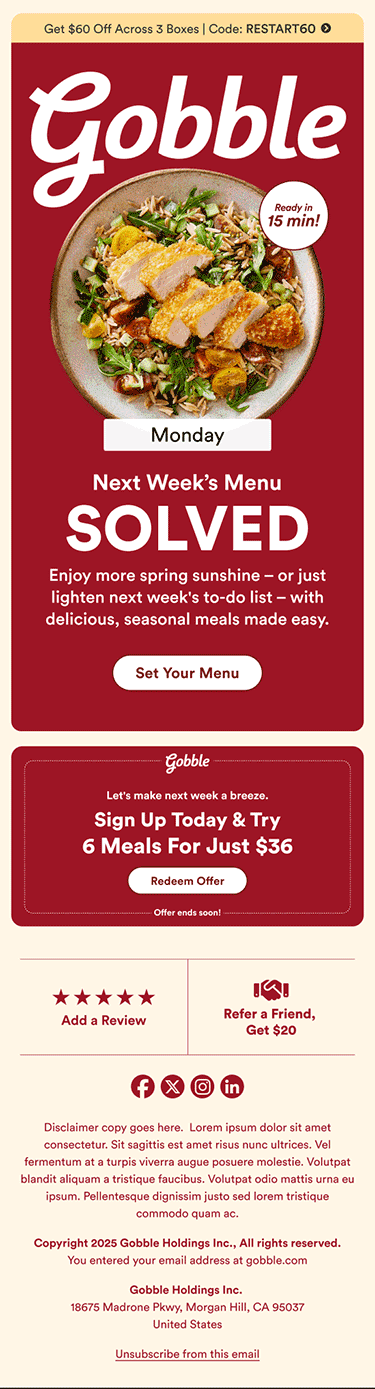 Develop a comprehensive email design system for Walgreens' vendor-sponsored communications. The primary objective is to clearly distinguish these emails as paid advertisements from third-party vendors, ensuring transparency and customer trust. The design will prioritize the vendor’s brand identity while seamlessly integrating elements of the familiar Walgreens aesthetic to maintain brand recognition.